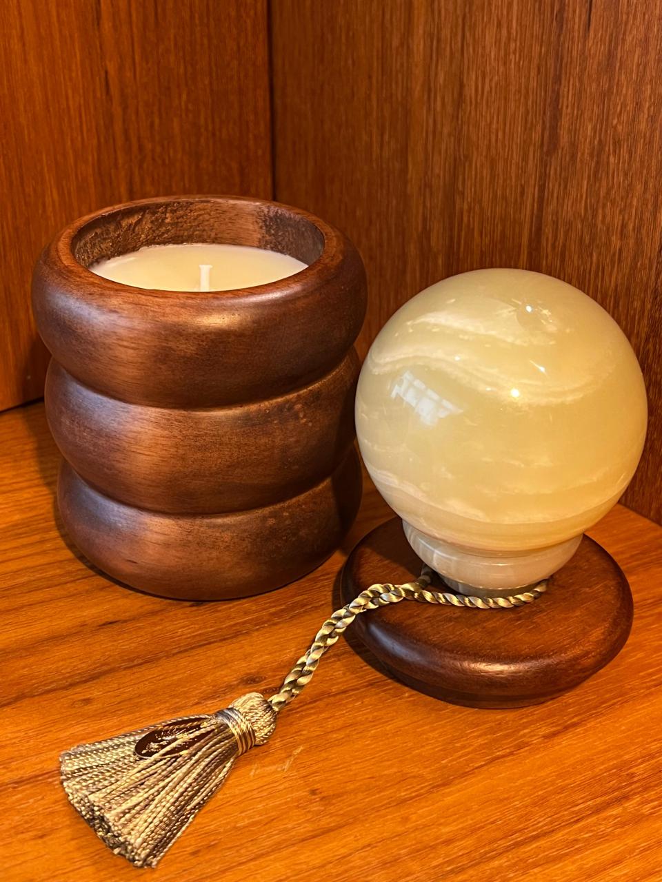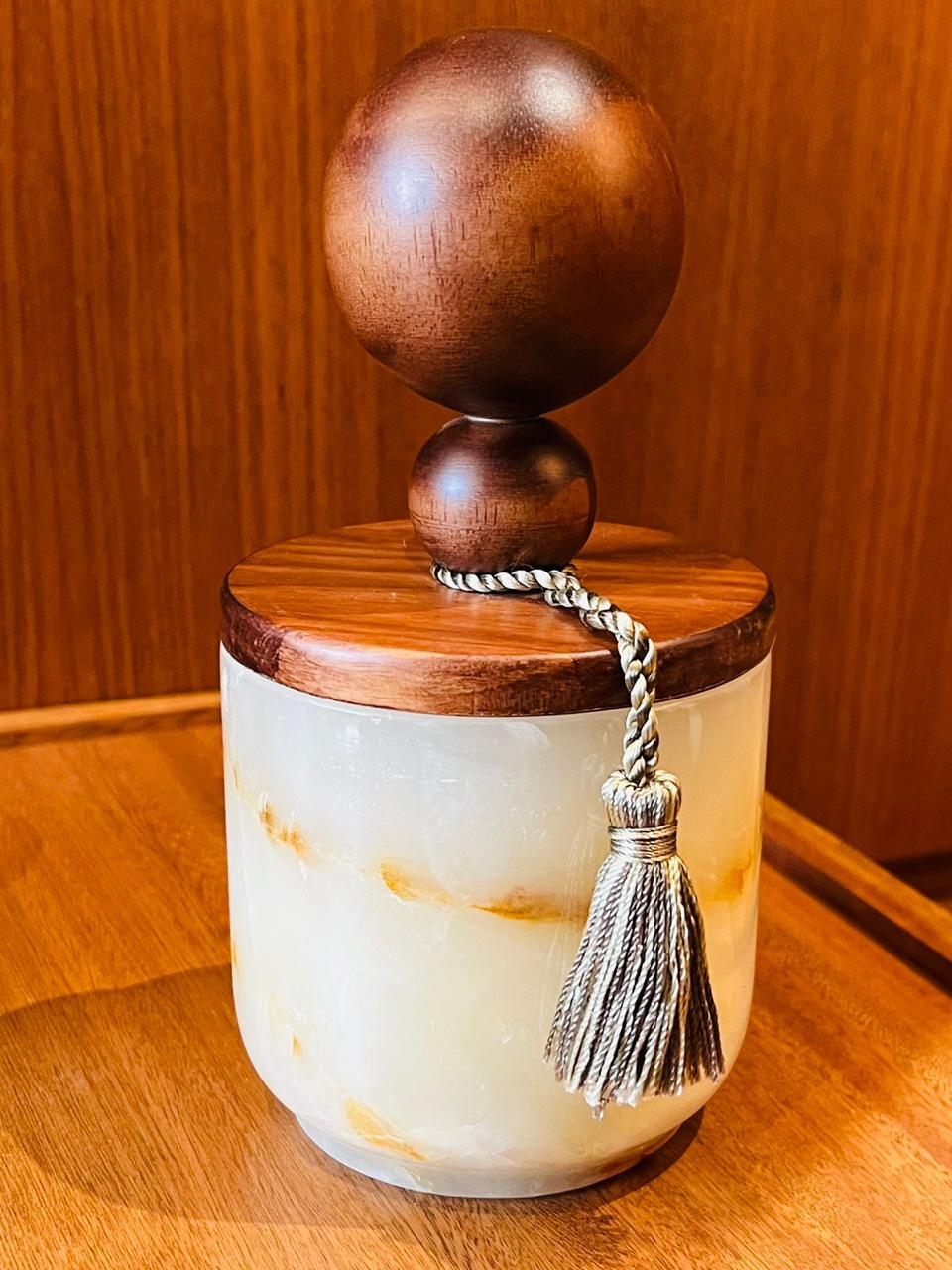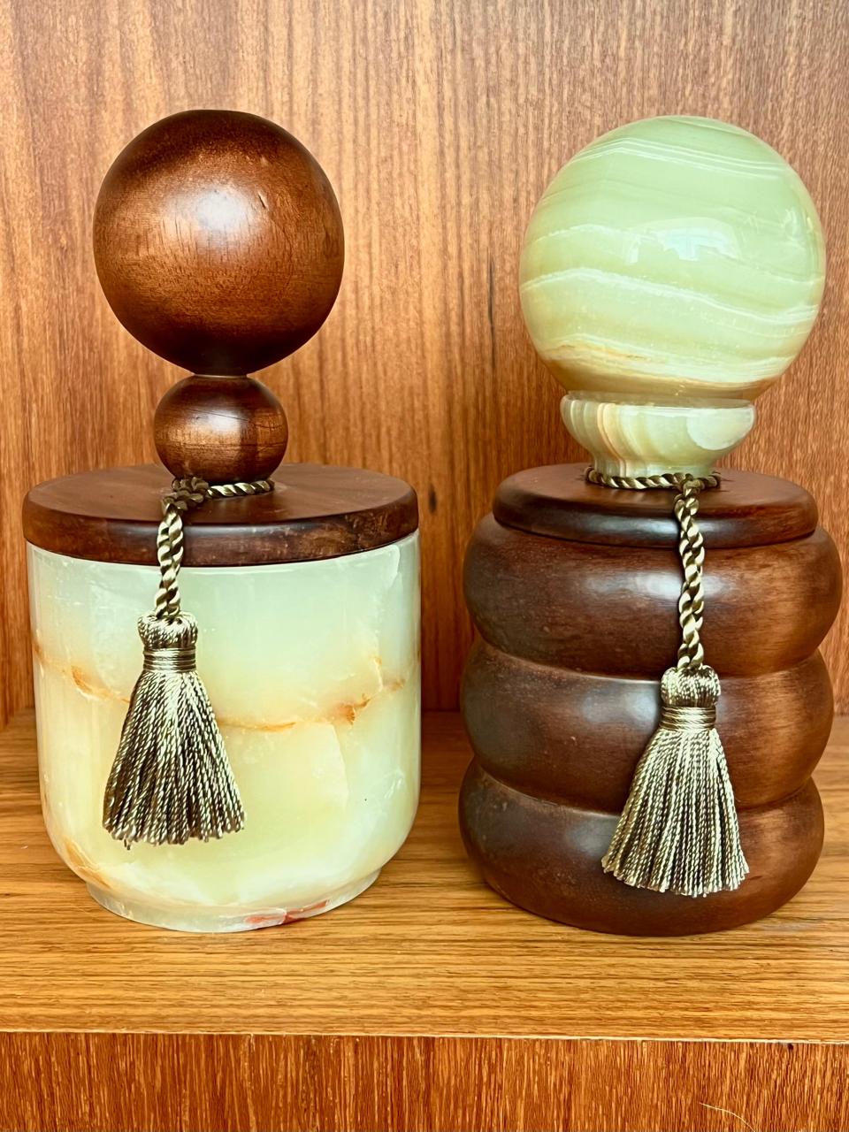 Material | Copo em Ônix e Tampa em Madeira, Copo em Madeira e Tampa em Ônix |